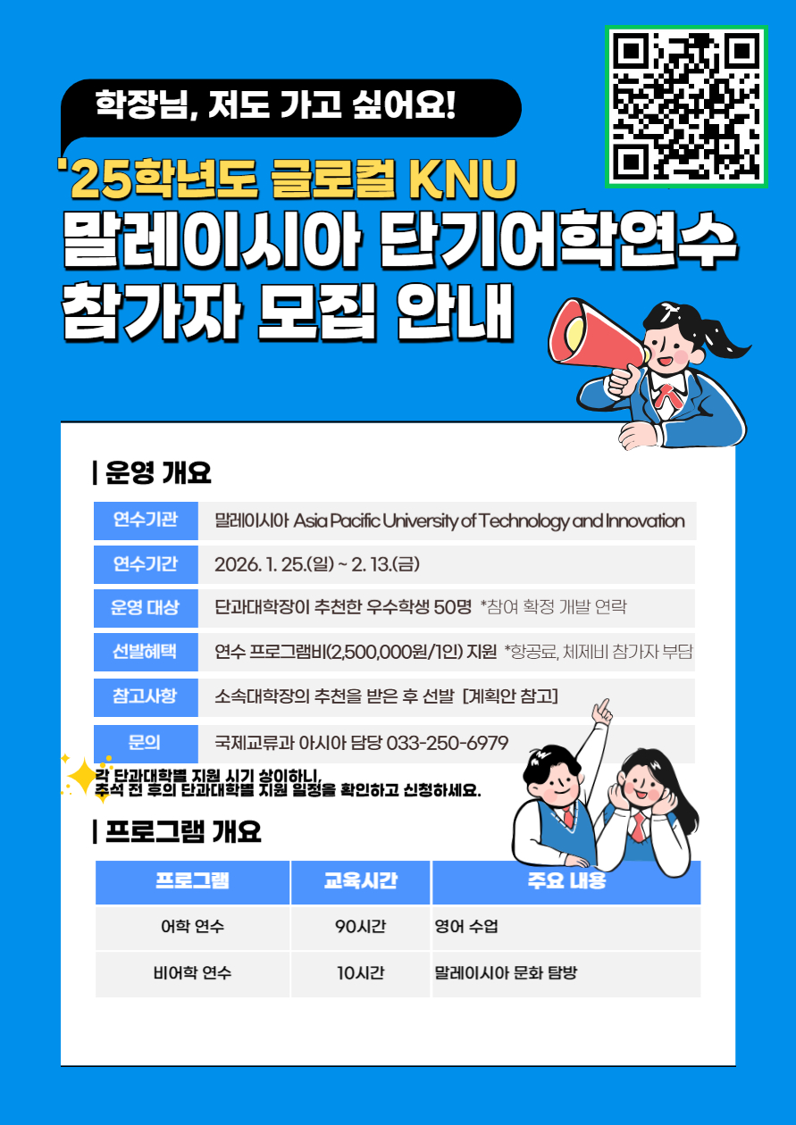 [2025학년도 글로컬 KNU] 말레이시아 단기어학연수(학장추천제) 모집 안내